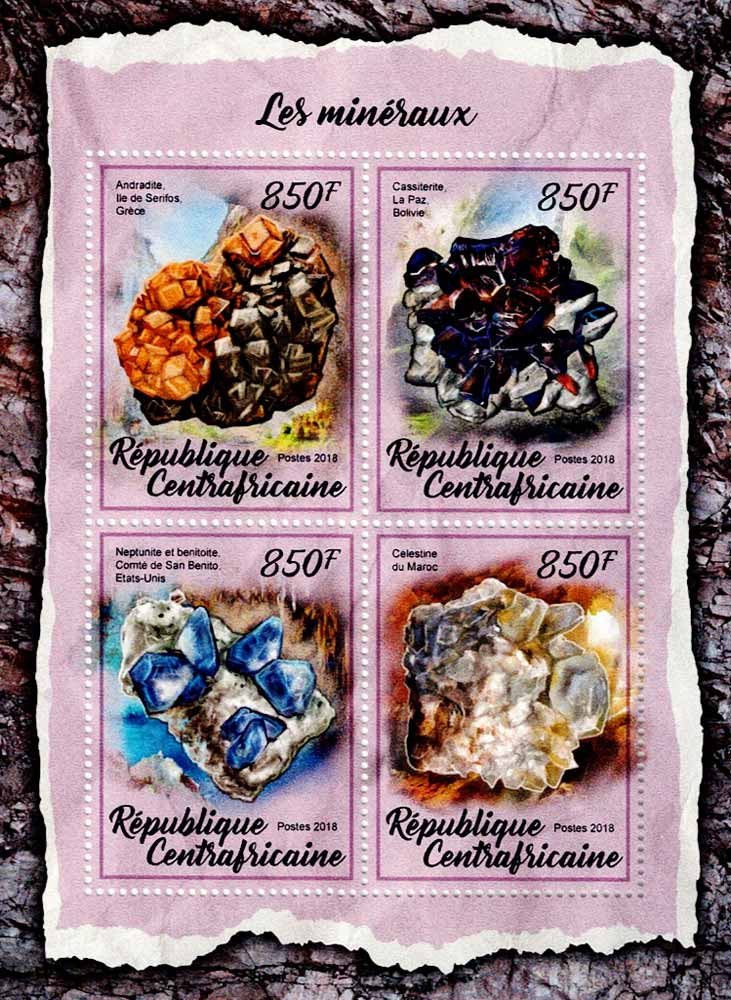 | Andradite garnet Cassiterite Neptunite Celestine |