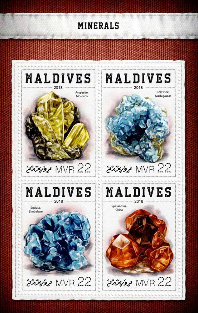 many stamps and leaflets related to minerals, from countries such as: