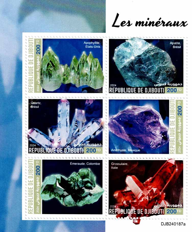 many stamps and leaflets related to minerals, from countries such as:
