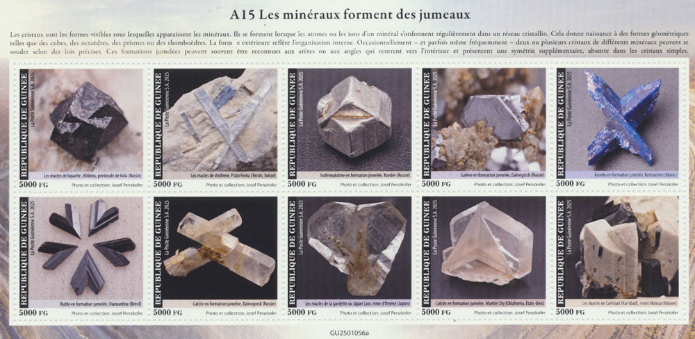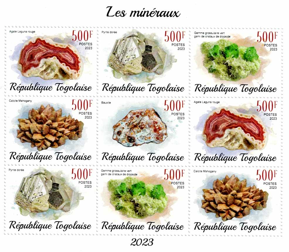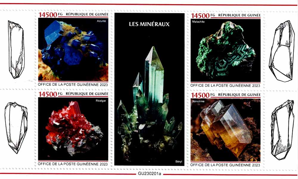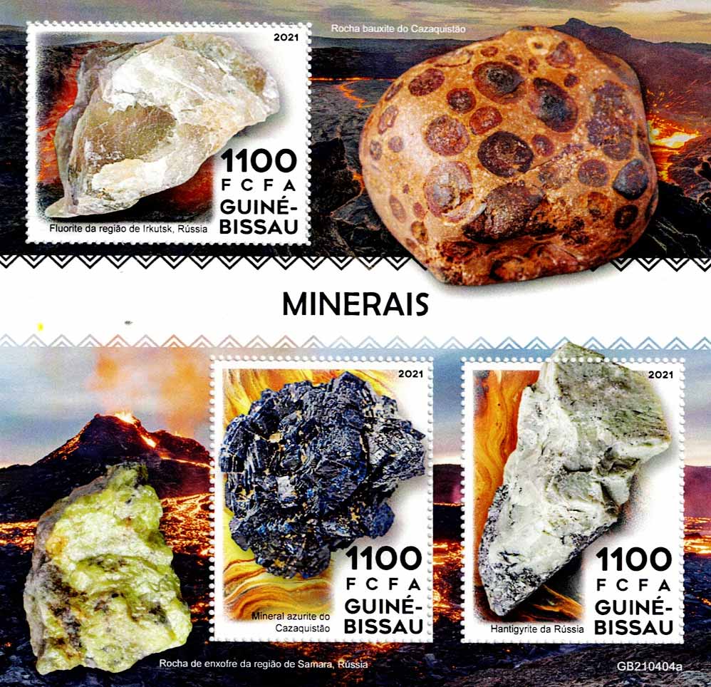 many stamps and leaflets related to minerals, from countries such as: